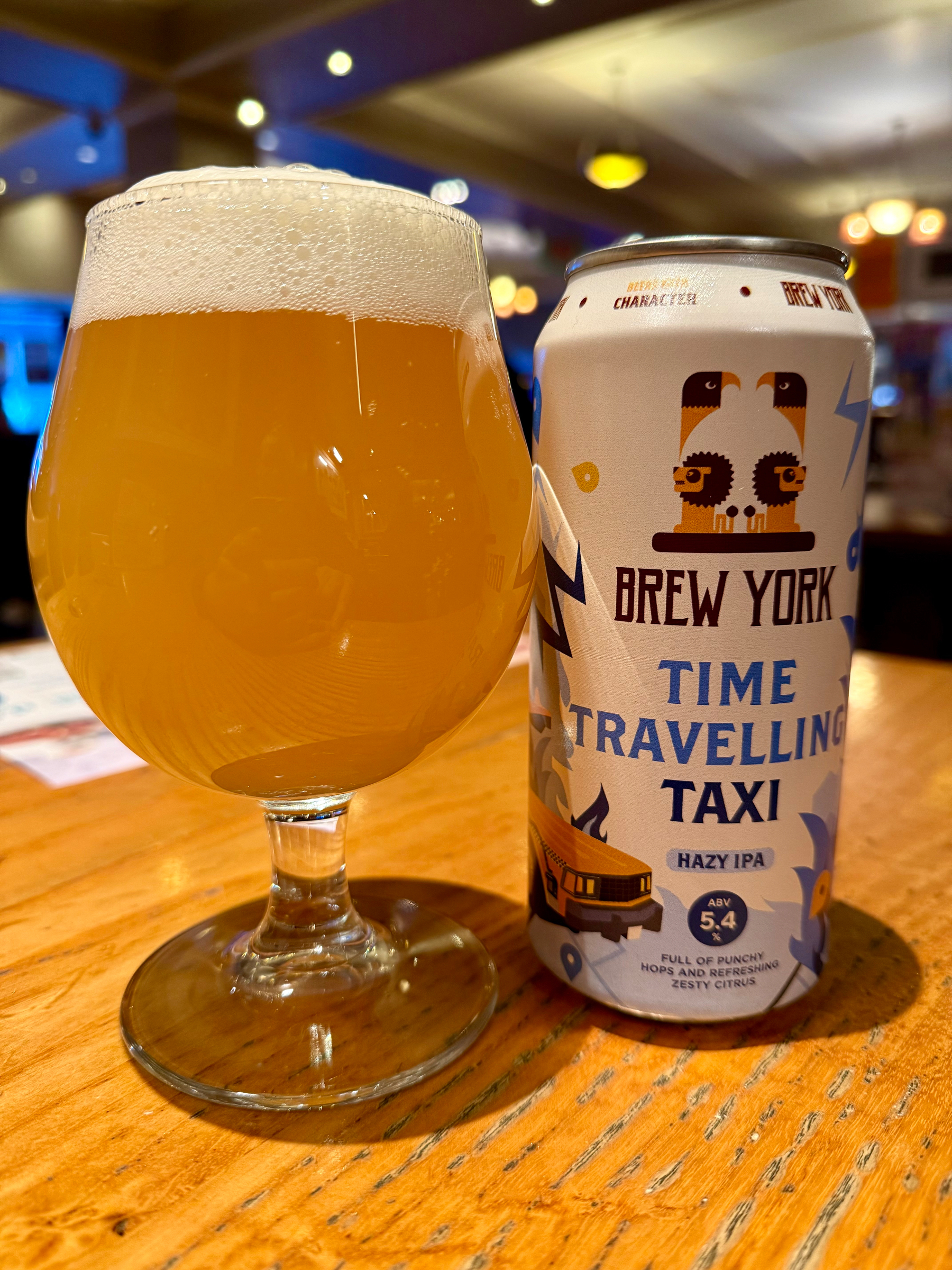 Time Travelling Taxi - Brew York - 5.4% ABV. B++ and a touch. Wonderfully hoppy, fruity and tropical and it seems to be can conditioned #ale #beer #bier