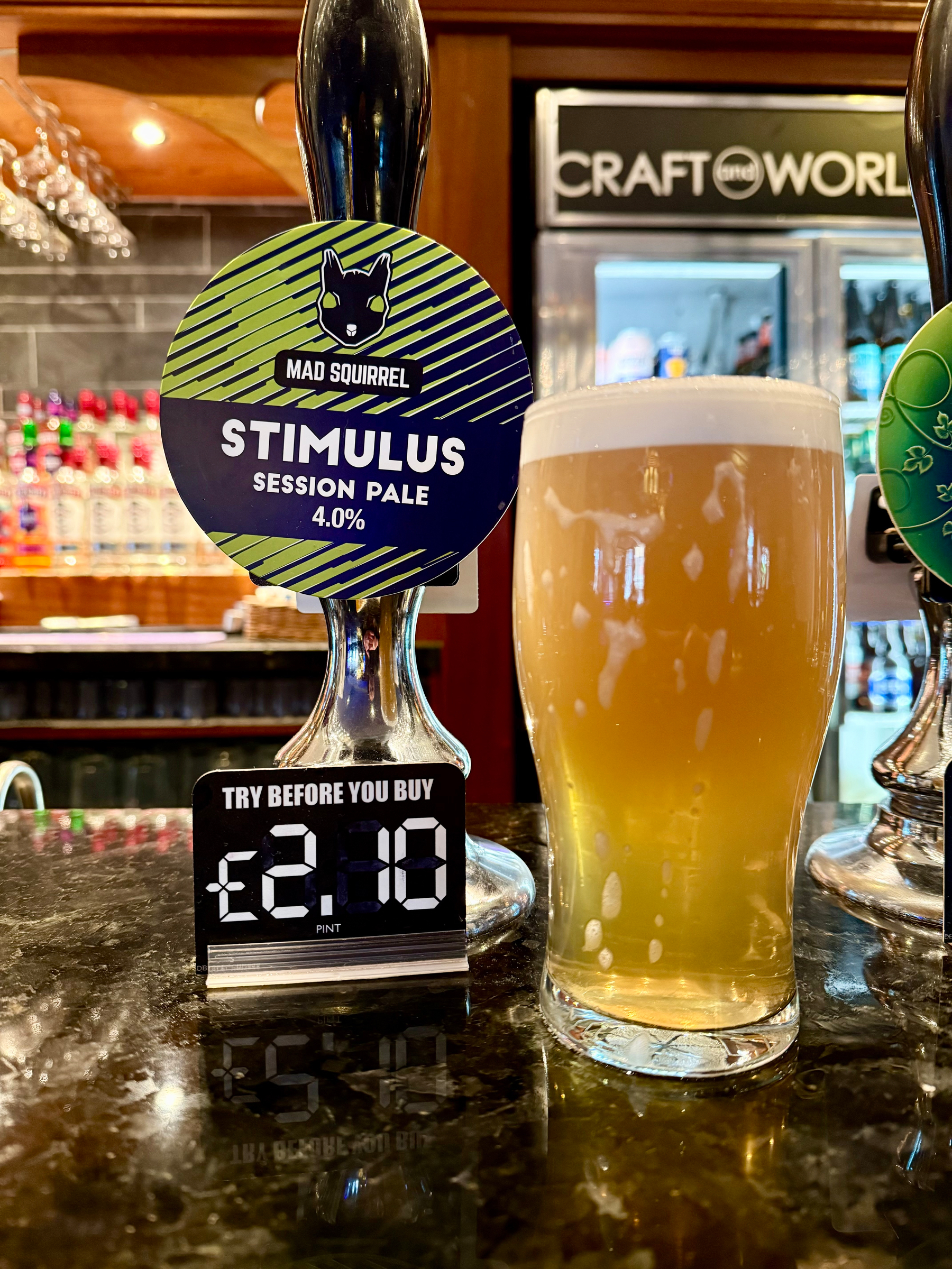 Stimulus - Mad Squirrel - 4.0% ABV. B+, but mostly as I think it’s on the way out. Light, malty with a floral body. Light fruity, bitter finish #ale #beer #bier