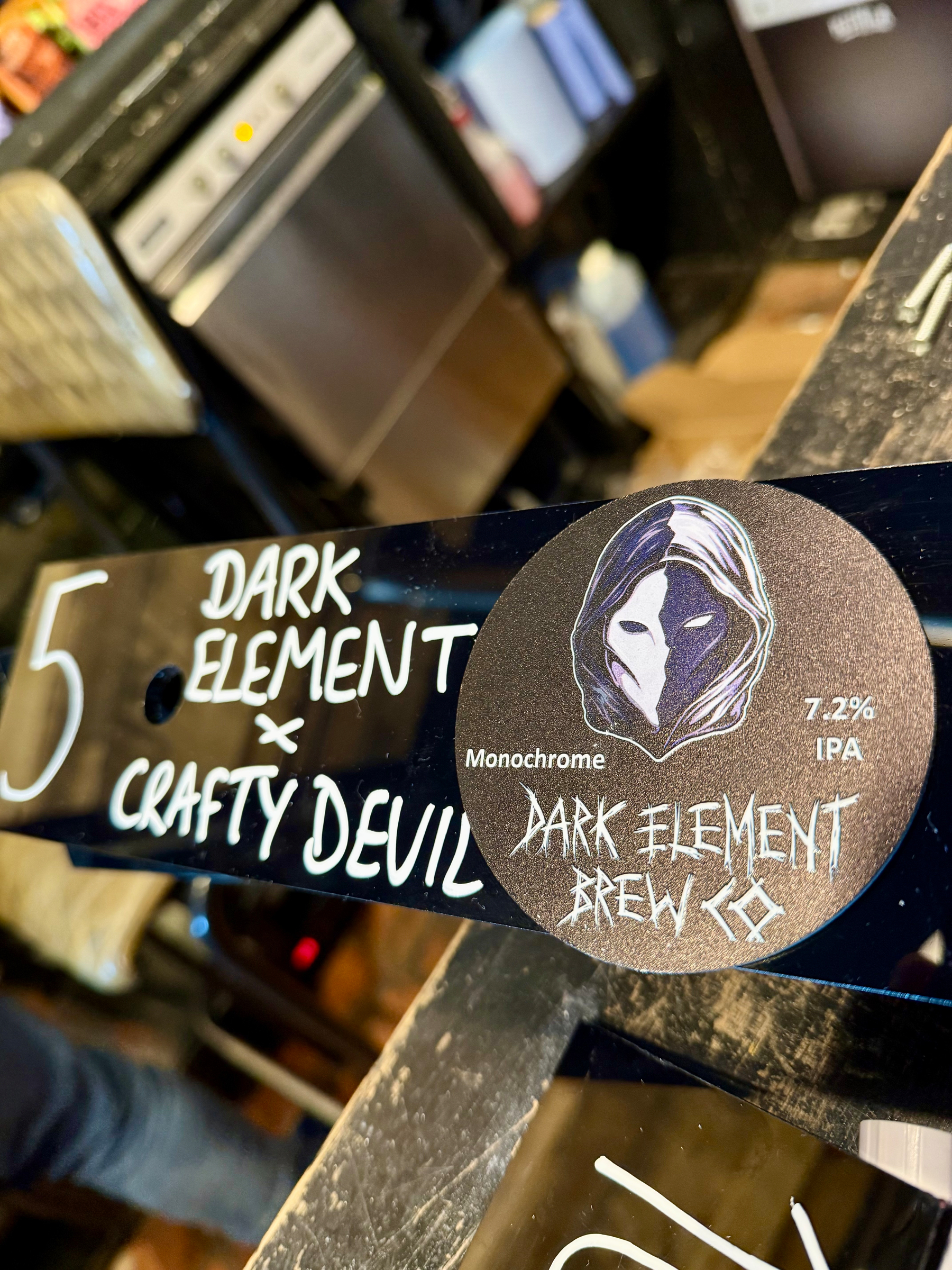 Monochrome - Dark Element / Crafty Devil - 7.2% ABV. B++ and a touch. Hoppy, hazy, strong but immensely drinkable. Taffy Collab #ale #beer #bier