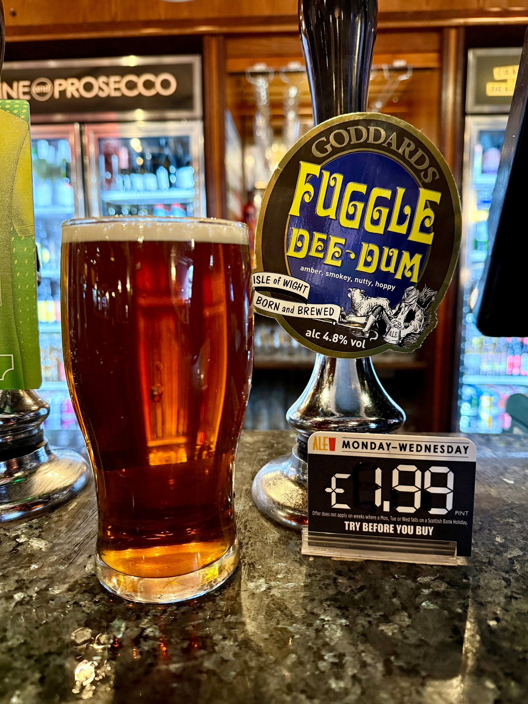 Fuggle Dee Dum - Goddards - 4.8% ABV. B+ and a touch. Malty with hints of smoke and spice. Gentle bitterness in the finish #ale #beer #bier