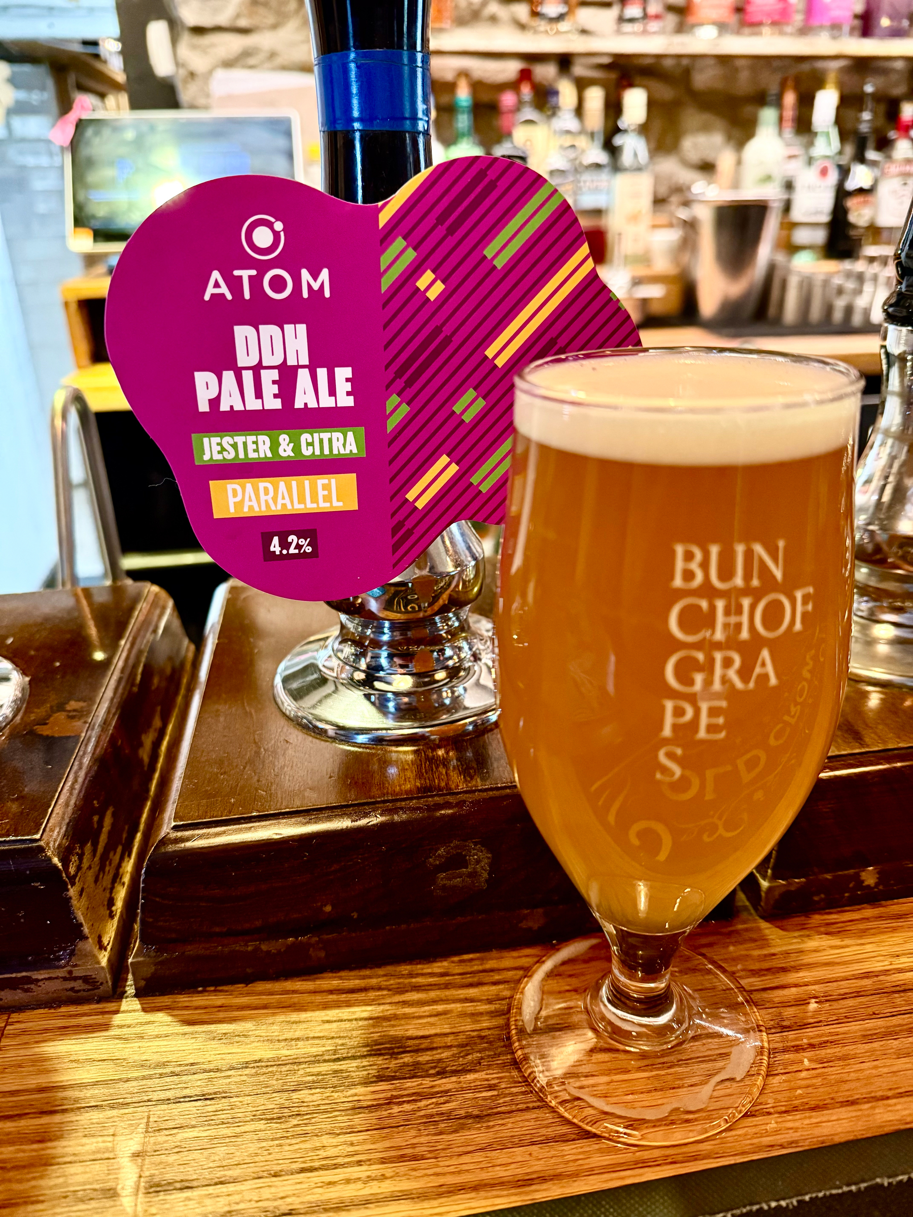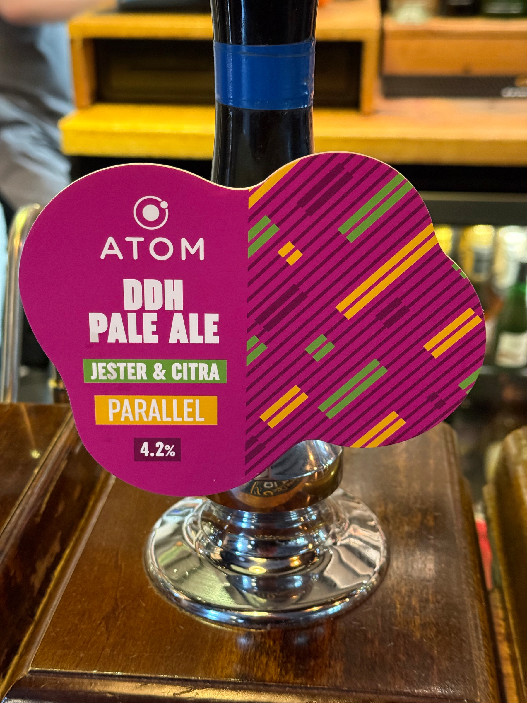 Parallel: Jester and Citra - Atom - 4.2% ABV. B+ and and a bit. Soft and fruity with hints of topicality. Gentle and sessionable. Cask #ale #beer #bier