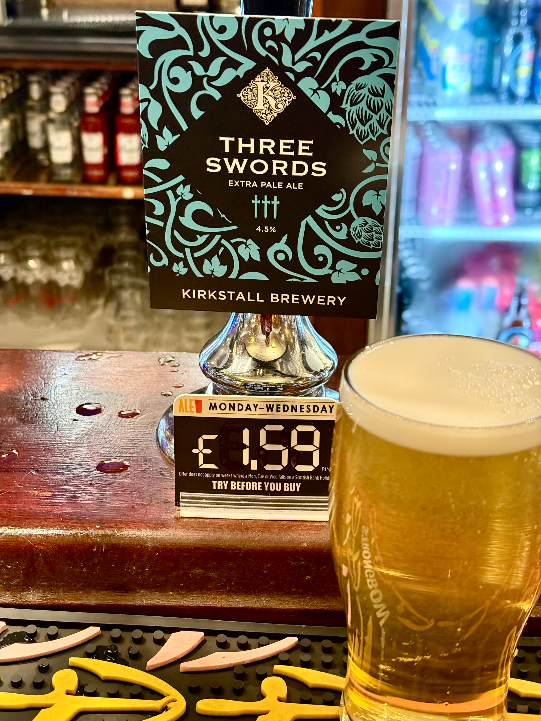 Three Swords - Kirkstall Brewery - 4.5% ABV. B+ and a bit, extremely light with sweet malty base balanced by a citrusy follow on. #ale #beer #bier