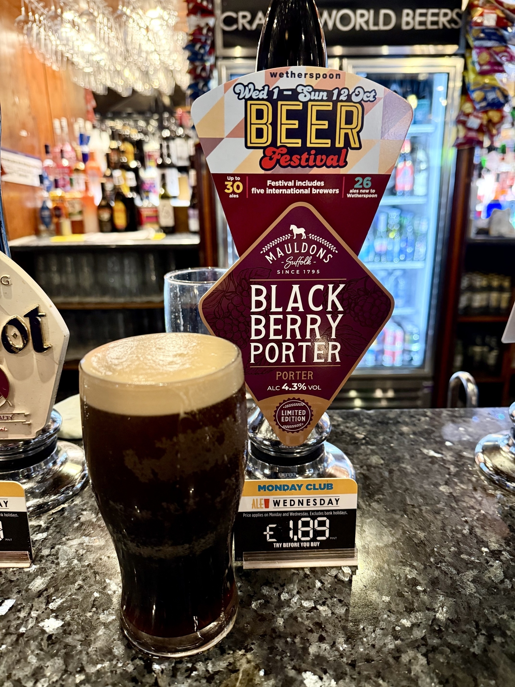 BlackBerry Porter - Mauldons - 4.3% ABV. B+ and a bit. Fruity on the nose, a little thin but you can really taste the BlackBerries #ale #beer #bier