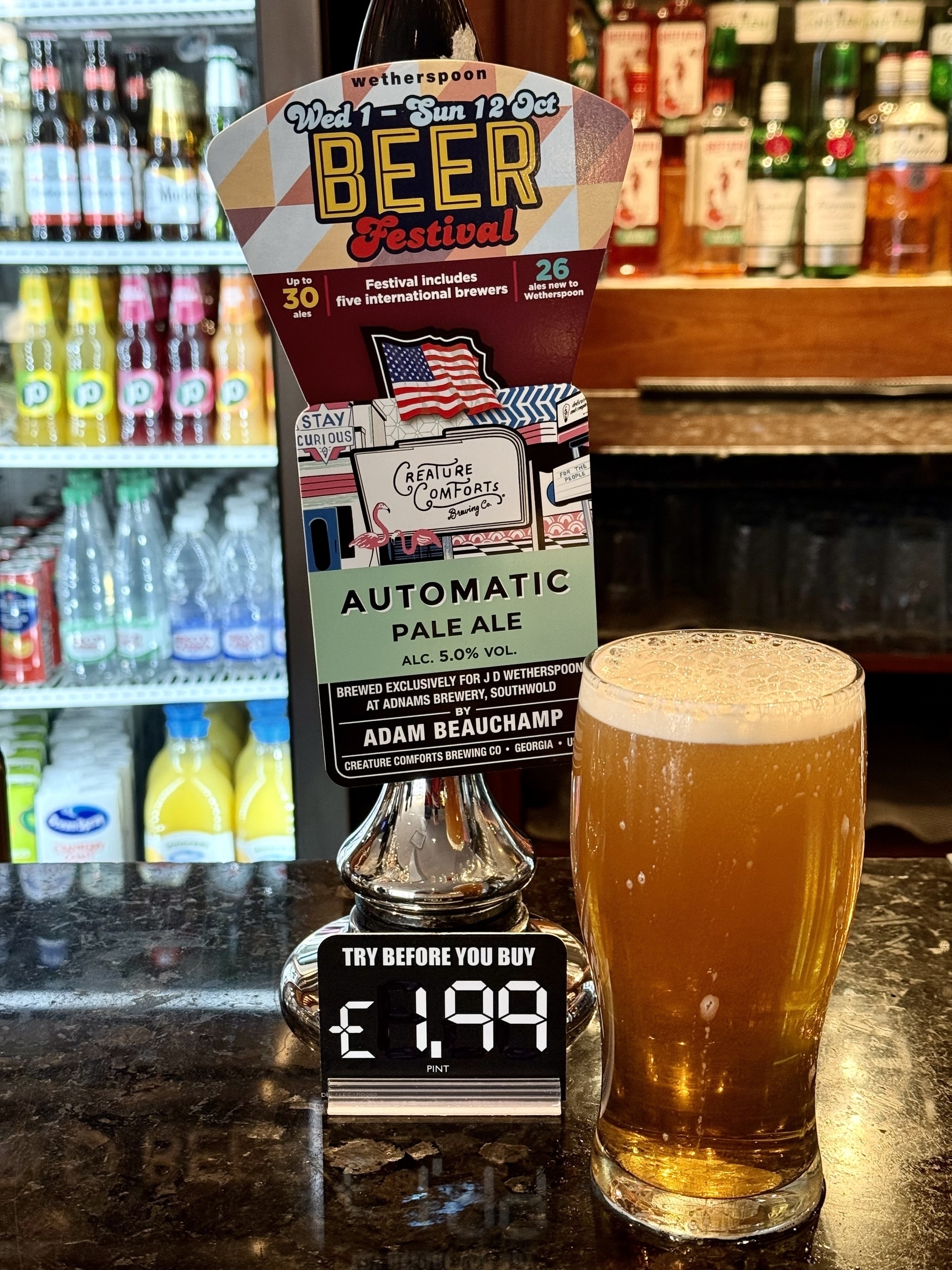 3.5/5. Spoons Fest. Brewed in the UK at Adnams. Storm Amy Wind warning outside. Quality Festing inside.