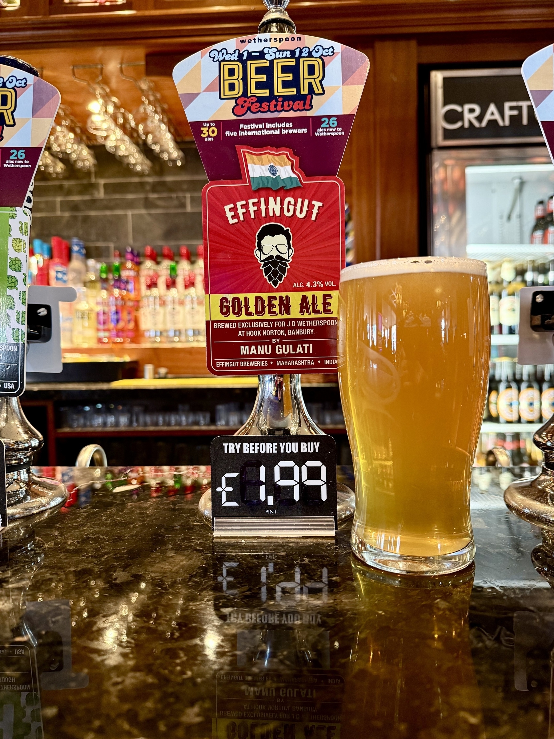 Golden Ale - Effingut - 4.3% ABV. B++, sweet fruit on the nose. Fruity, sharp, hoppy and pleasingly spicy. Complex bitter finish #ale #beer #bier