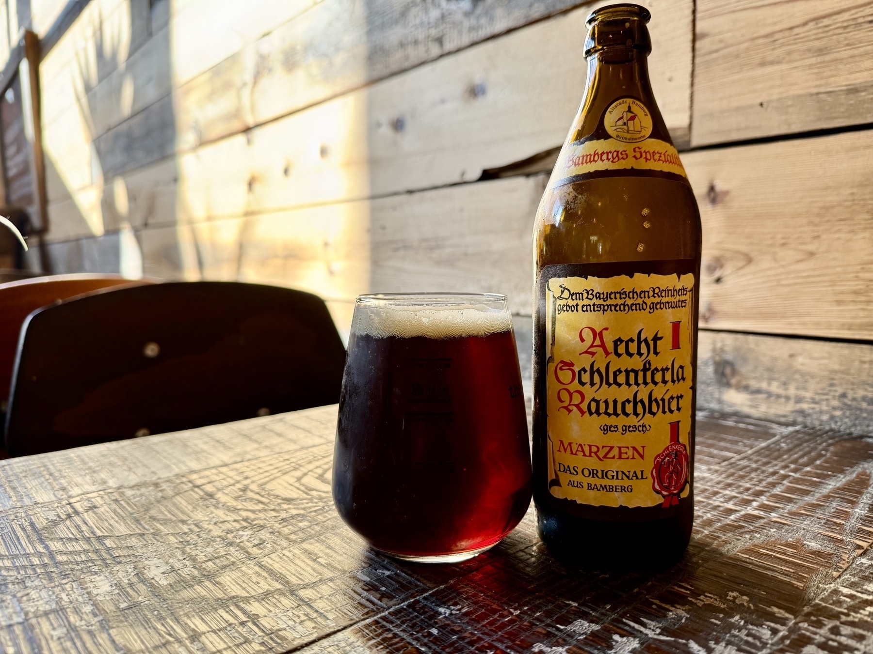 Aecht Schlenkerla Rauchbier - Märzen - 5.1% ABV. B++, classic Rauchbier. Smoke and malt on the nose. Complex but accessible. Smokey but very drinkable. Grower+ #ale #beer #bier