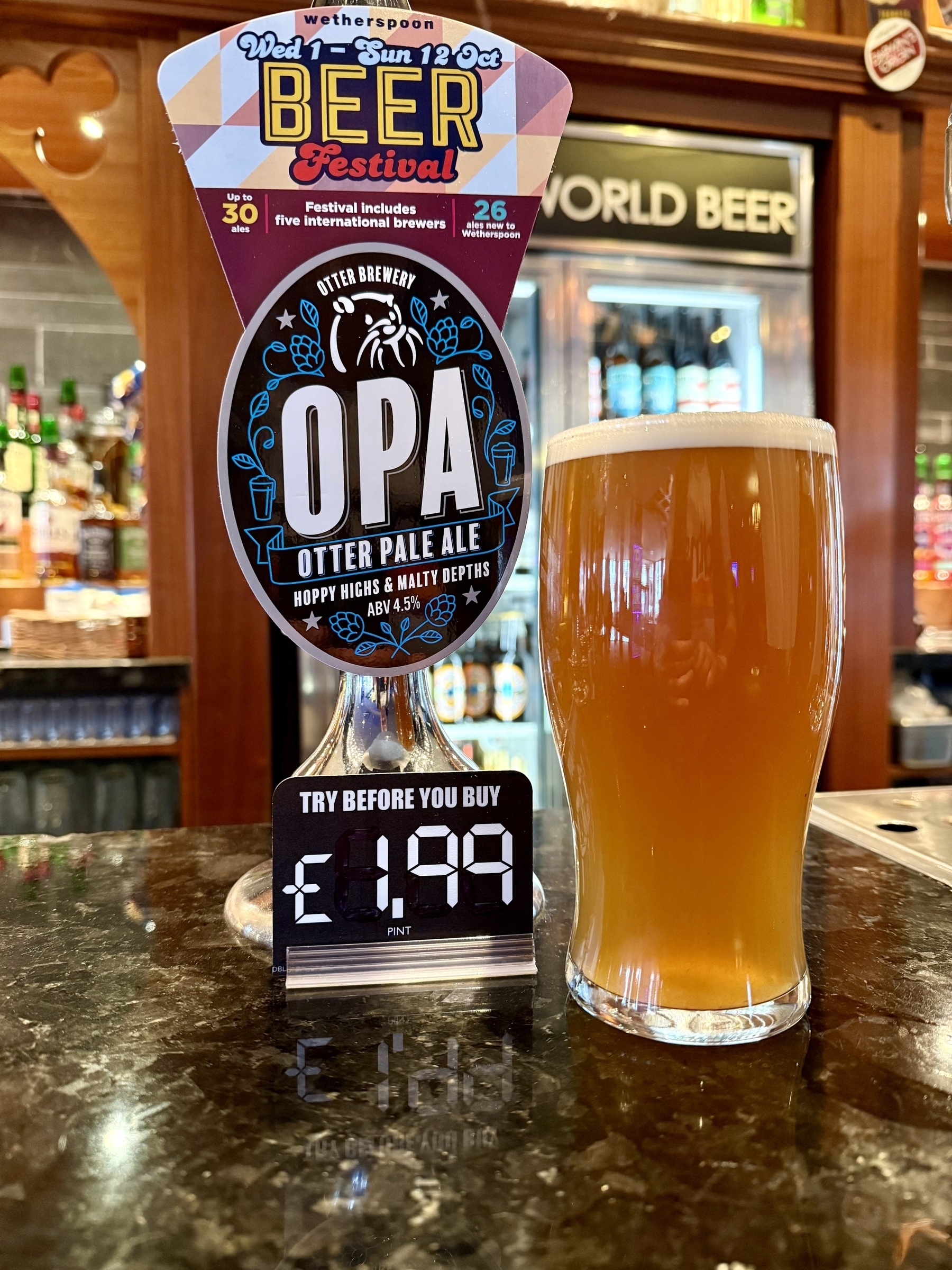 OPA - Otter Brewery - 4.5% ABV. B+ and a bit, malty, fruity with hints of Orange. Gentle Orange and bitter finish #ale #beer #bier