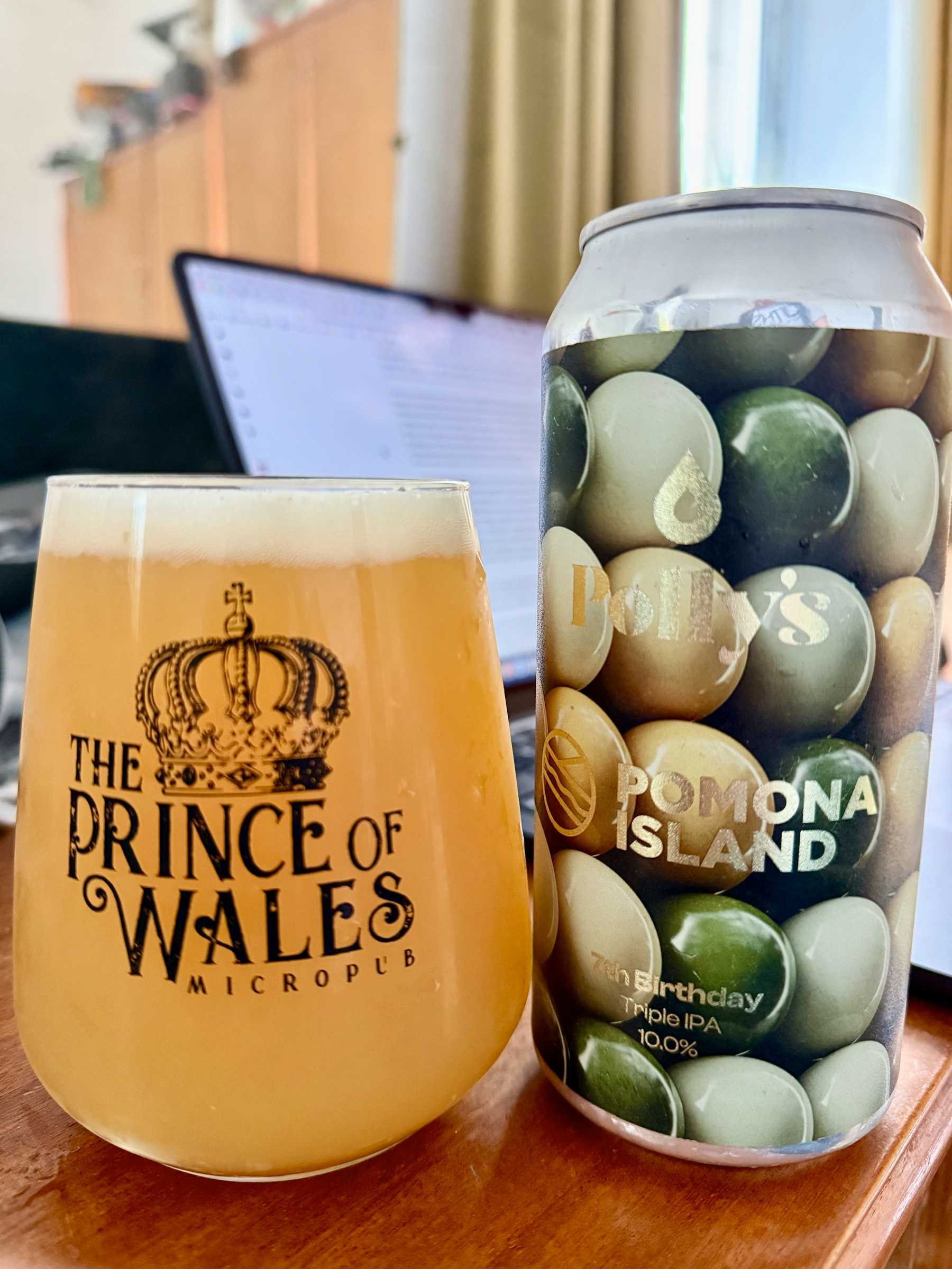 Polly’s / Pomona Island - 7th Birthday Triple IPA - 10% ABV. B++ Big, Boozy and Fruity. Soft mouth feel with a sweetness before the finish. Solid #ale #beer #bier