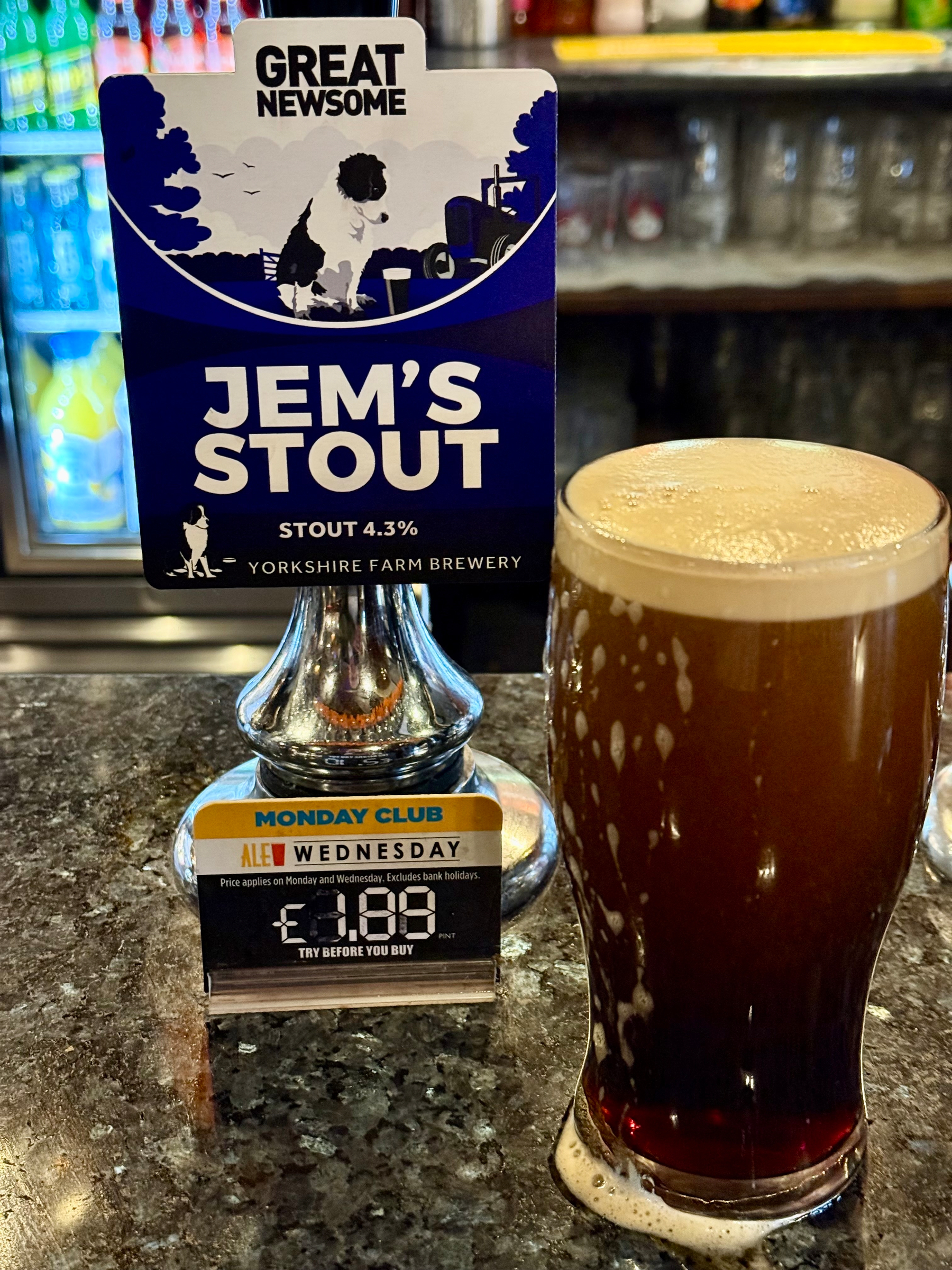 Jem’s Stout - Great Newsome - 4.3% ABV. B++ Proper Stout with big forward malty, coffee and burnt notes #ale #beer #bier