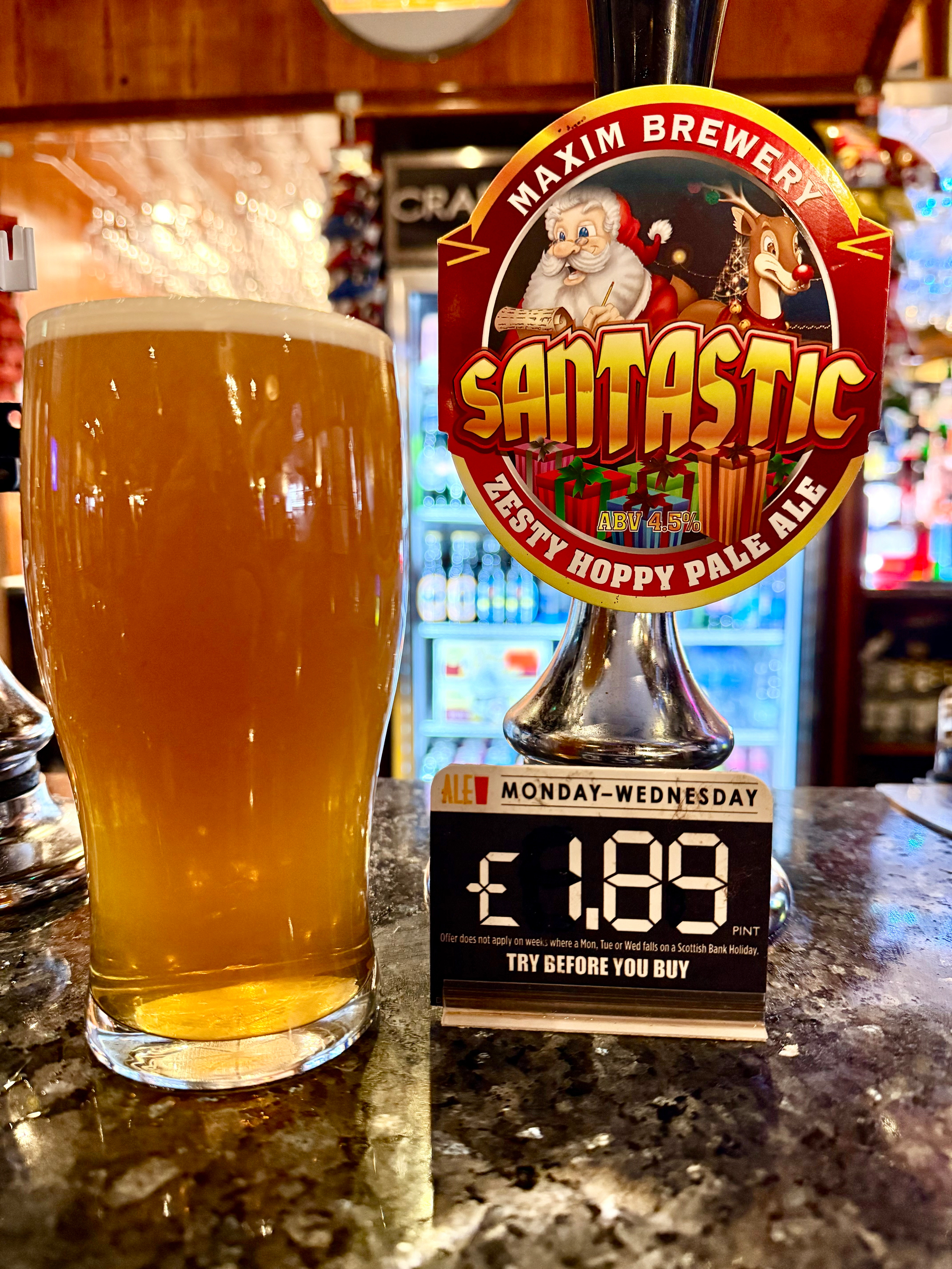 Santastic - Maxim Brewery - 4.5% ABV. B+ and a bit and a touch. Hugely hoppy in the form of Grapefruity. Love it #ale #beer #bier