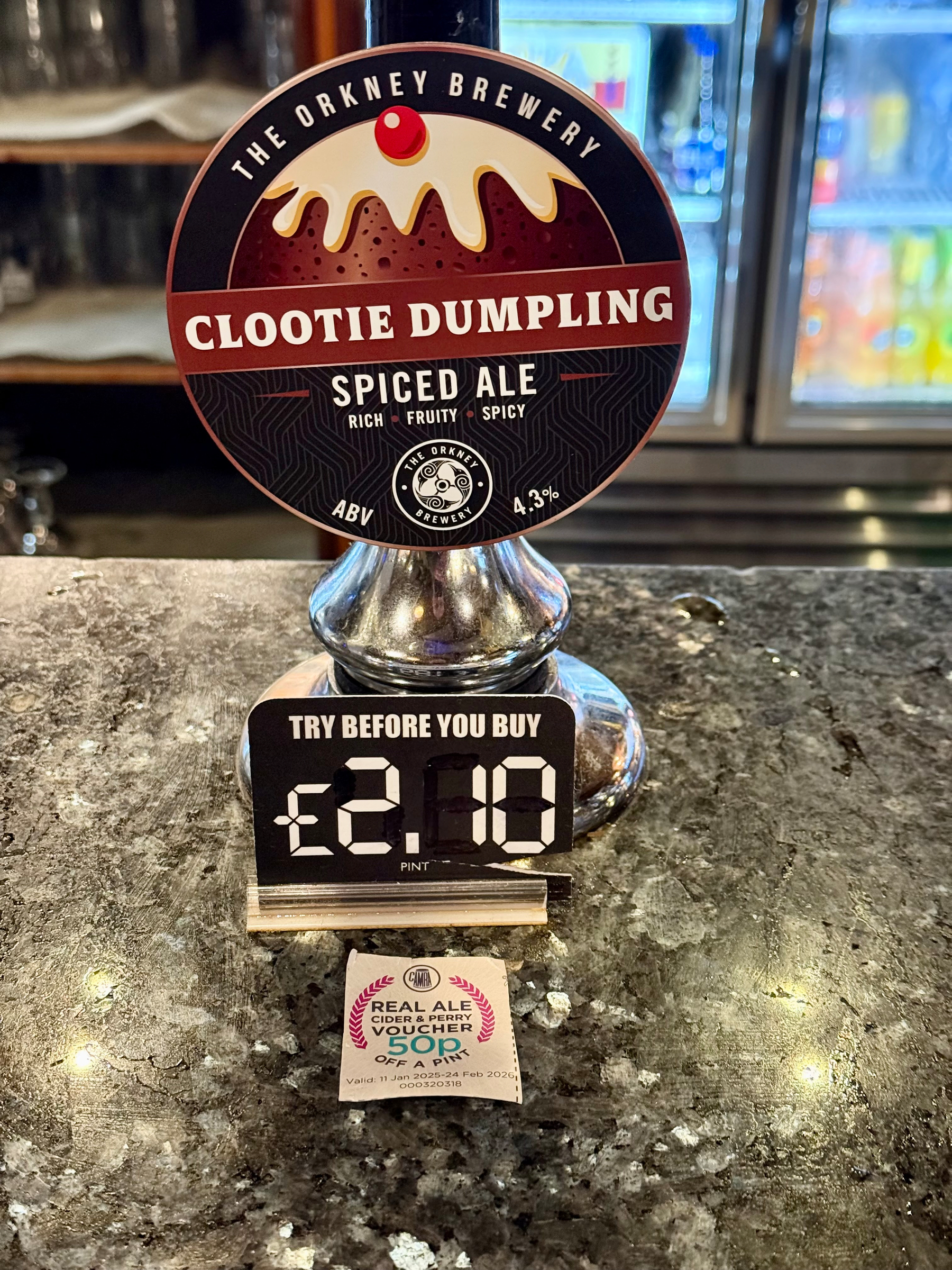 Clootie Dumpling - The Orkney Brewery - 4.3% ABV. B++, fresh on. Really Spiced Up. A true Christmas Ale in Top Condition #ale #beer #bier