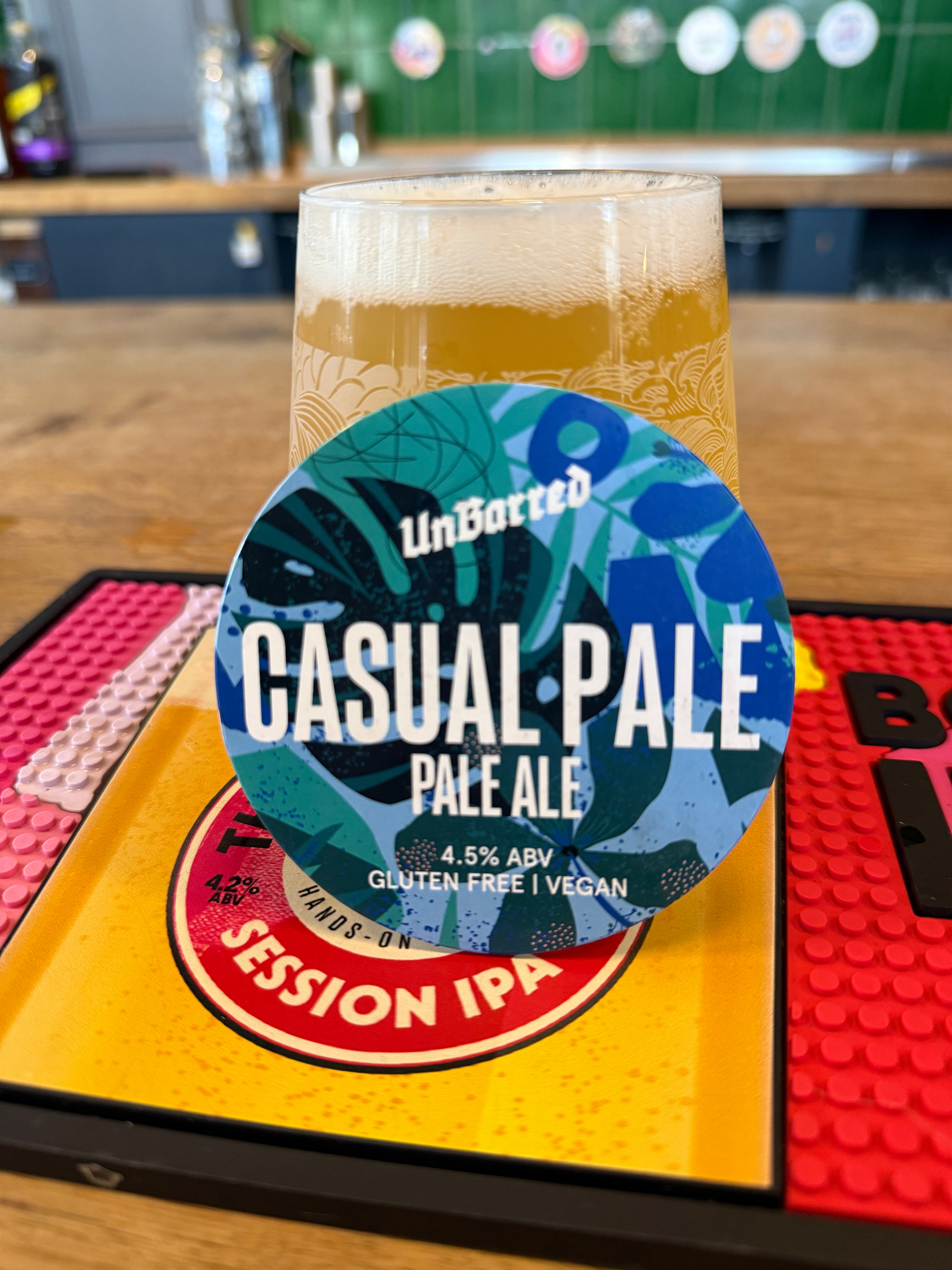 Casual Pale - Unbarred - 4.5% ABV. B+ and a bit, fruity, hoppy , grapefruit, piney. Fruity, gentle bitter finish #ale #beer #bier