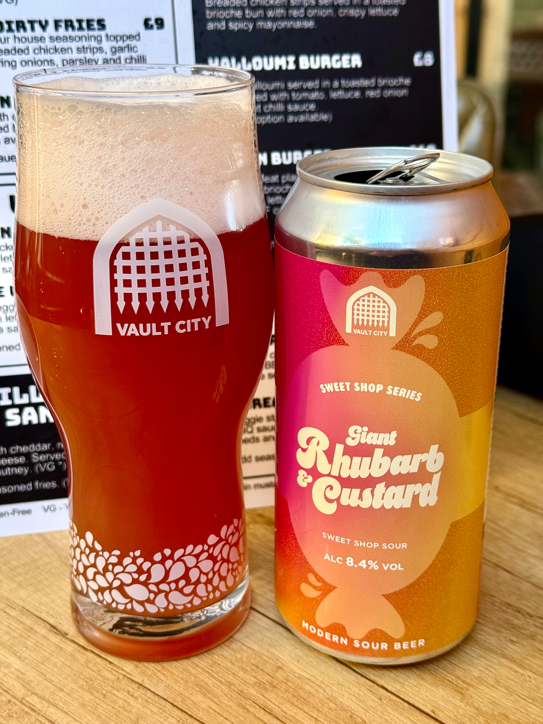 Giant Rhubarb and Custard - Vault City - 8.4% ABV. B++, completely Rhubarb and Custard with a gentle sweetness and sourness. 8.4%, no trace #ale #beer #bier